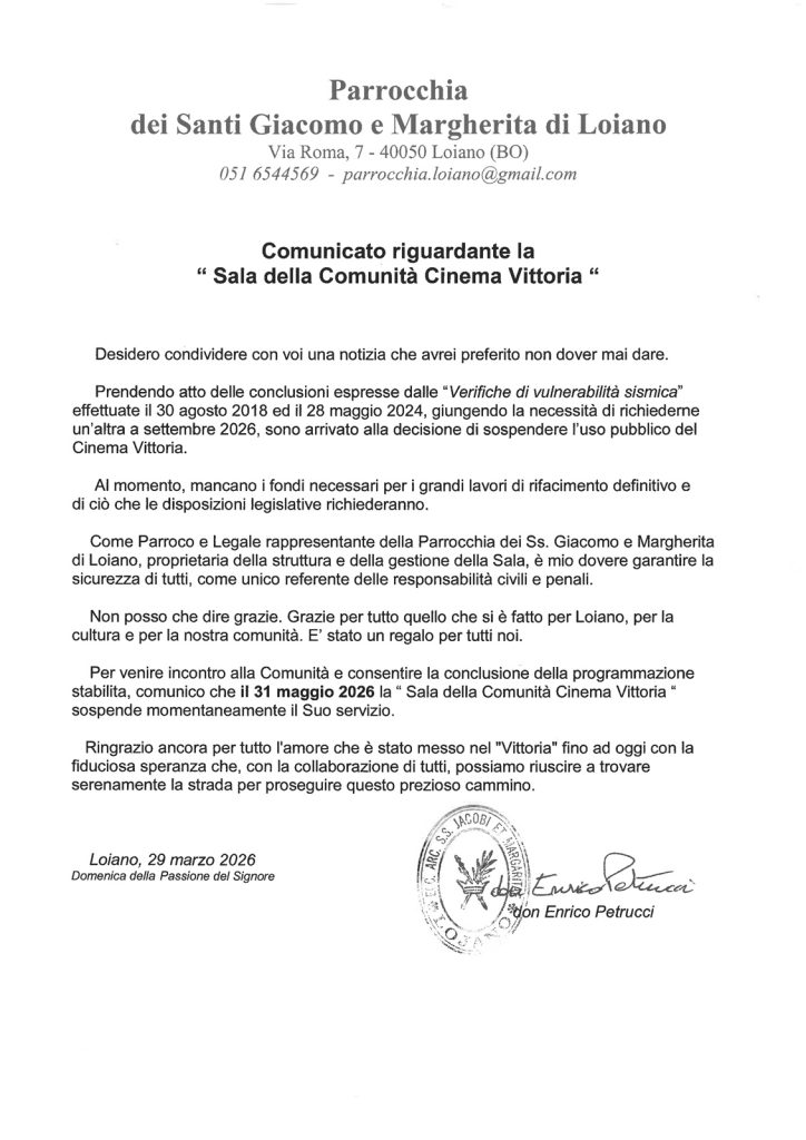 • COMUNICATO Sala della Comunità Cinema Vittoria