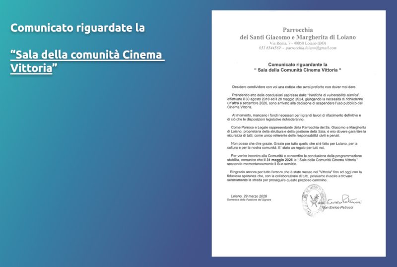 Comunicato riguardante la “Sala della comunità Cinema Vittoria”