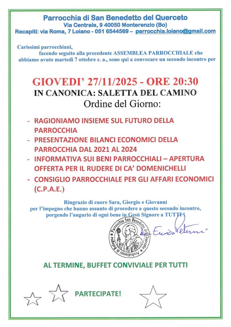 20 Novembre 2025 Convocazione di S.Benedetto Screenshot giovedì 27 Novembre Descrizione: Convocazione di S.Benedetto Inizio: 27/11/2025 20:30 Fine: 27/11/2025 21:30 Categorie: Zona Pastorale Convocazione SBQ