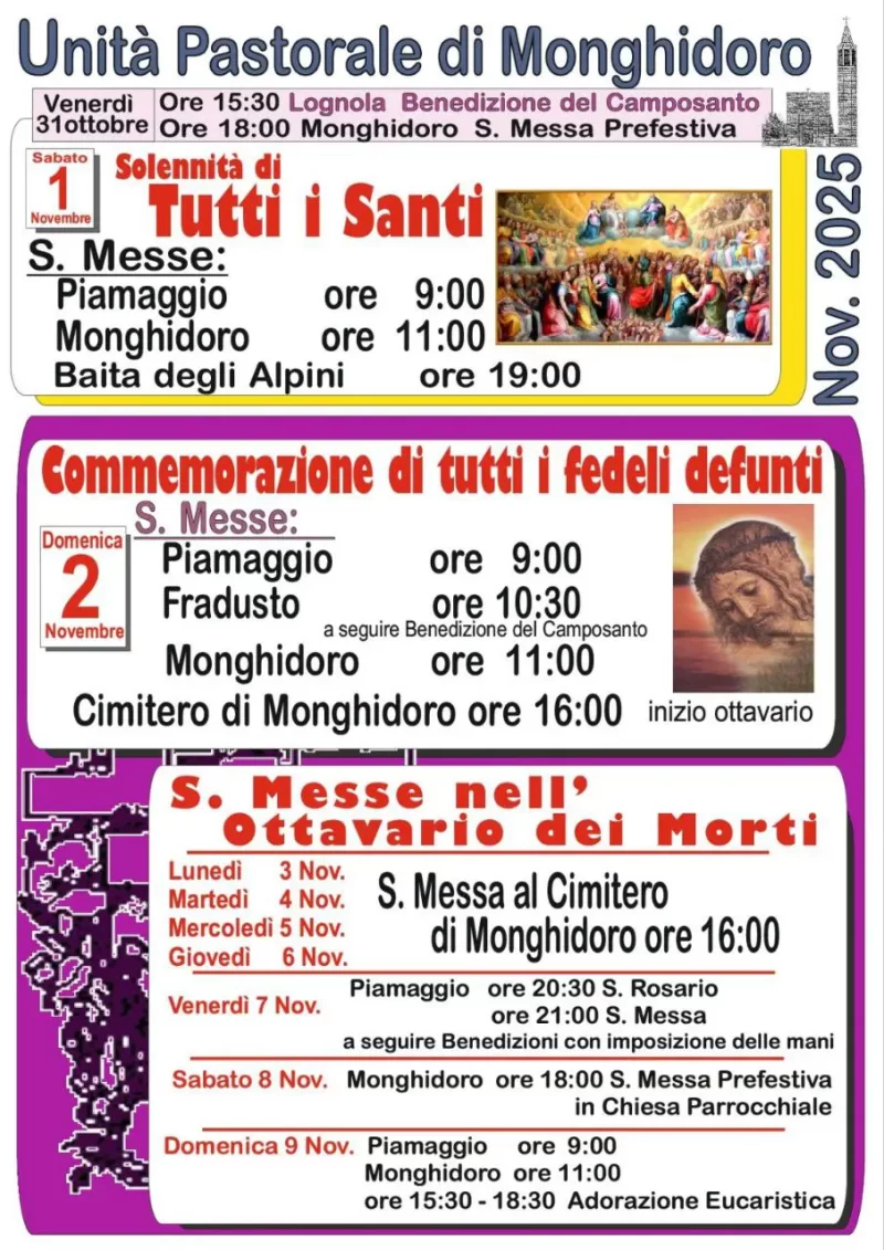 25 Ottobre 2025 Unità Pastorale di Monghidoro venerdì 31 Ottobre Descrizione: Unità Pastorale di Monghidoro Inizio: 31/10/2025 00:00 Fine: 09/11/2025 00:00 Categorie: Zona Pastorale